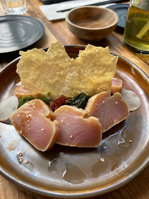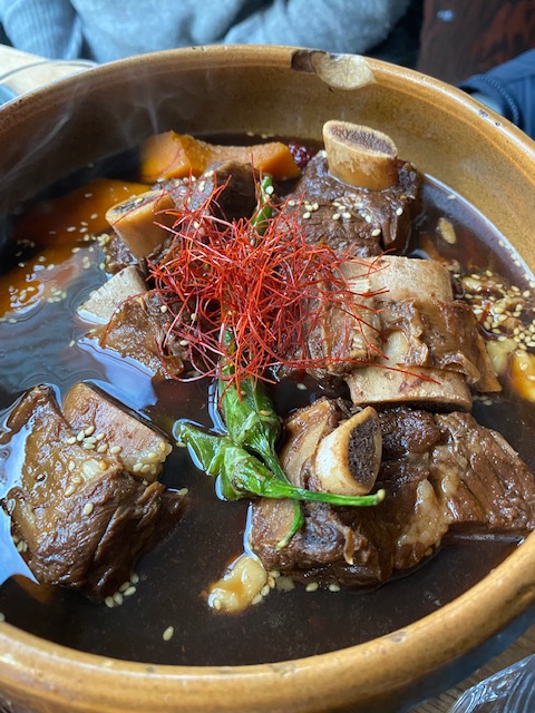 The dishes they serve are both traditional and inventive with great depths of flavour and a whole lotta umami. We started our meal with yam salad (spring mix, with roasted yams and other more traditional salad items, served with a tangy dressing) and albacore tuna tataki. Definitely not the best tuna tataki we’ve had, but the fact that it was served with an abundance of seemingly different types of fresh seaweed, made up for the lack luster tuna. The stand out starter for us, however, was the fresh fried eggplant. The asian eggplant comes bathed in a rich, thick sauce, showered with tiny shards of deep fried yam. It is definitely something to behold and taste. We also had the vegetable and mushroom udon and the braised short rib pot. The braised short rib was particularly delicious. Generous, meat beef short ribs were served in a thick broth, rich with interesting additions such as walnuts and goji berries, and the meat fell of the bone.